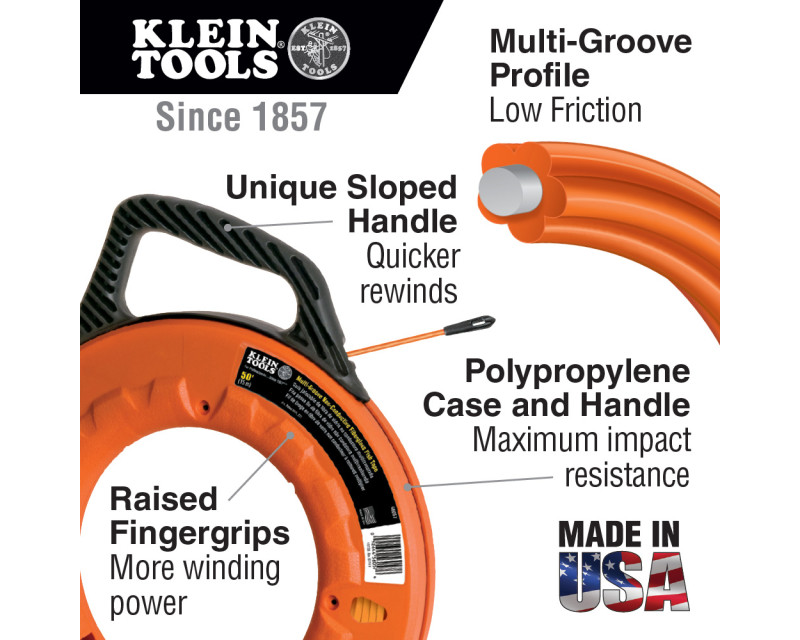 Protahovací pero Klein Tools, v pouzdře, drážkované 30,5m průměr 4,8mm zakončení s ocelovou spirálou
