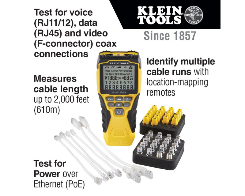 LAN TESTER - VDV Scout® Pro 3 Tester Kit Locator (PoE) - KLEIN TOOLS