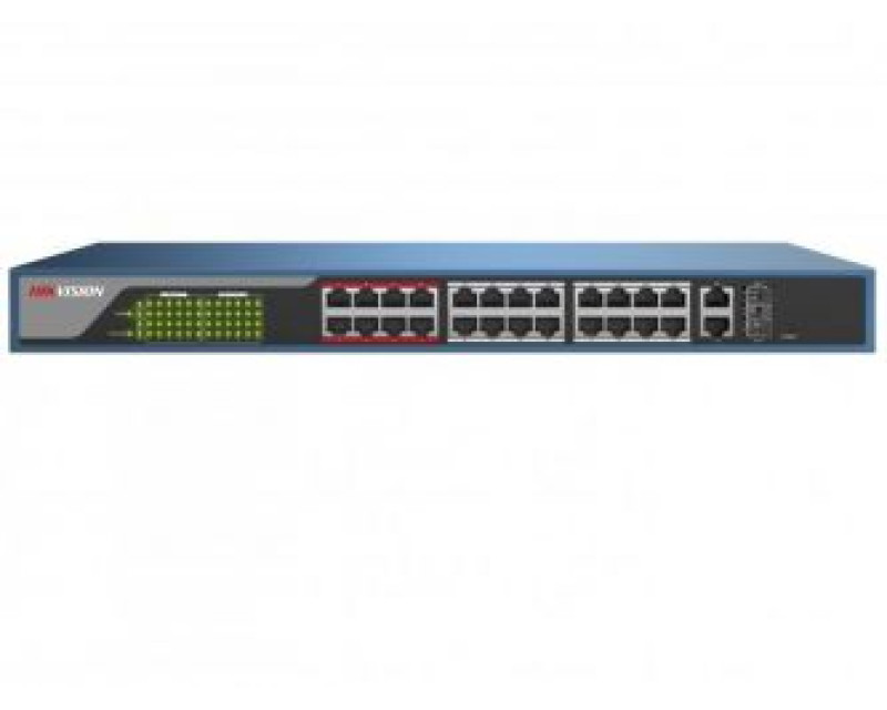 Switche a POE napájení HikVision 24x POE | 24x 100 Mb/s | 2x 1 Gb Combo port | výkon 370 W | Web-management | dosah až 250 m / 10 Mb