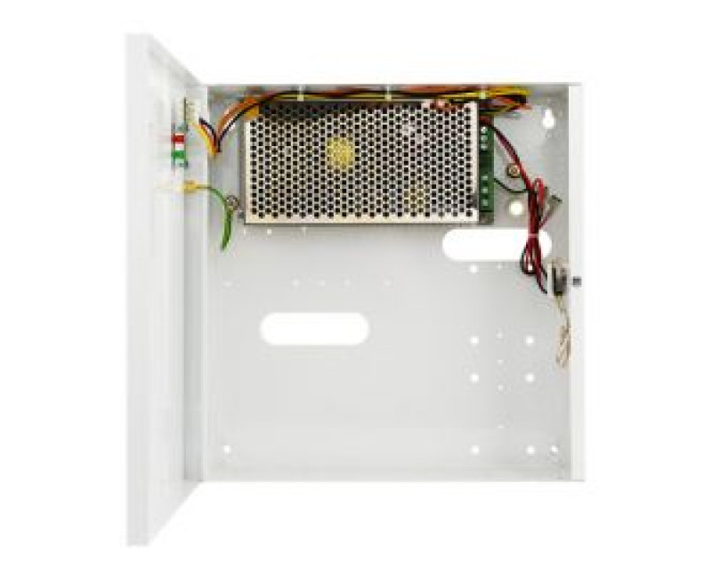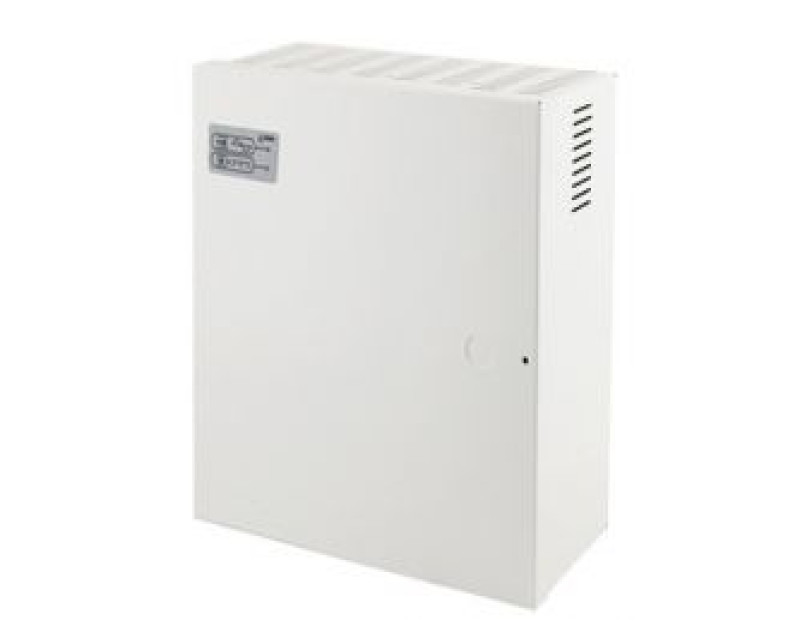 V případě přerušení dodávky síťového proudu dojde k okamžitému přepnutí na napájení z akumulátorů. Zdroj je konstruován na bázi modulu impulsního napájecího zdroje s vysokou energetickou účinností. Zdroj se nachází v kovové skříňce (barva RAL 9003) s místem na akumulátor 17Ah/12V. Skříňka je vybavena mikropřepínačem signalizujícím otevření dvířek (zepředu).