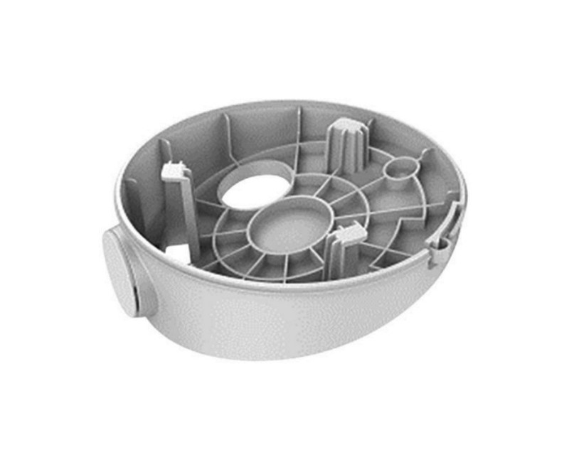 Kryty a držáky pro Fisheye kamery HikVision Zadní kryt pro skrytou montáž kabelů pro kamery Hikvision, montáž na šikmý strop, materiál: plast, barva: bílá, 1x otvor zboku + 1x v základně, průměr 112mm, výška 41mm
