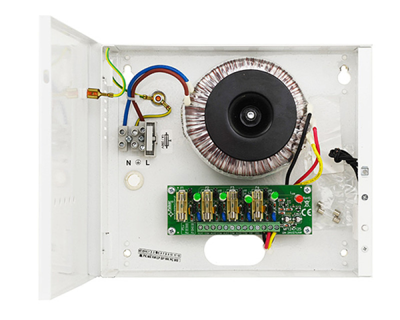 24 VAC, 12 VDC transformátory Pulsar Napájecí zdroj v kovovém krytu s pojistkovými moduly 24 V / 4 x 1A