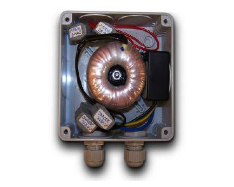 24 VAC, 12 VDC transformátory METEL s.r.o. Toroidní trafo 230V/24V-100VA v krytu IP55, zalitý střed, venkovní provedení s vyhříváním