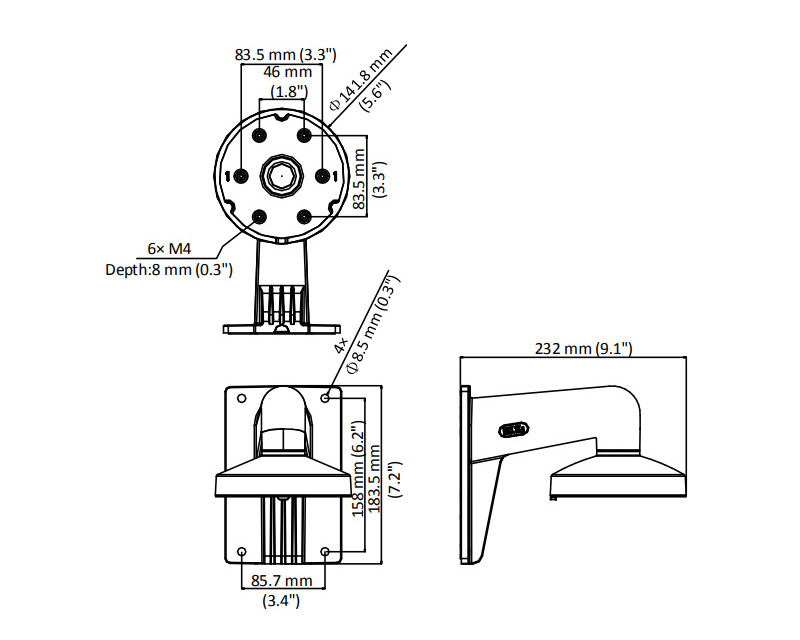 Kryty pro Dome kamery HikVision Držák na stěnu pro DOME kamery Hikvision, materiál: hliník, barva: bílá, rozměry 184 x 120 x 232mm, průměr základny pro kameru 142mm