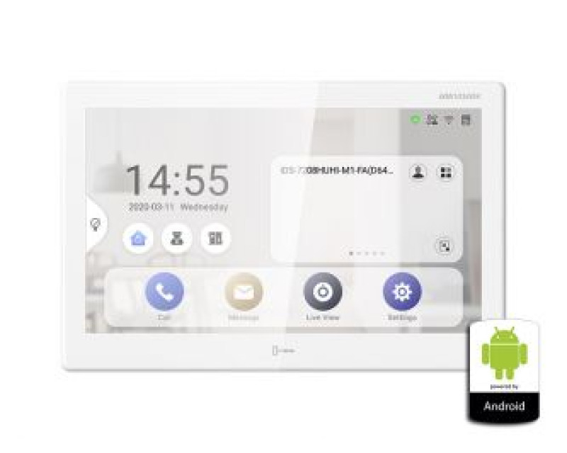 Vnitřní monitory HikVision Video Intercom 2. generace, vnitřní stanice, 10" obrazovka, SD slot, wifi, Android, předinstalovaná aplikace Hik-connect, podpora instalace dvou externích aplikací
