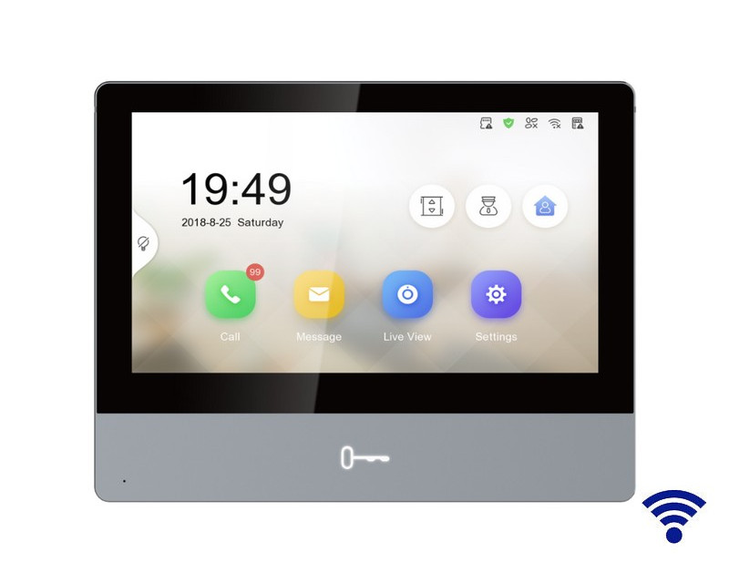 Vnitřní monitory HikVision 7" barevný TFT-LCD monitor pro videotelefony určený pro instalaci na stěnu, dotykové ovládání, WiFi, tlačítko pro odemknutí, rozlišení monitoru 1024 x 600 px, vestavěný mikrofon a reproduktor, Hik-Connect, podpora TF karty max. 128GB, rozhraní RS-485, LAN port 10/100 Base, 8/2 alarm vstup/výstup, rozměry 180 x 140 x 22.4 mm, provedení metal, PoE napájení po LAN síti nebo z napájecího adaptéru 12VDC - 7W, zdroj není součástí