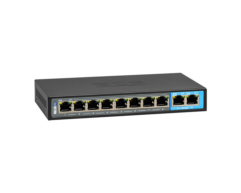 BCS-B-SP0802 10 portový switch - 8x PoE 36W 10/100Mbps + 2x uplink RJ-45 10/100Mbps,…