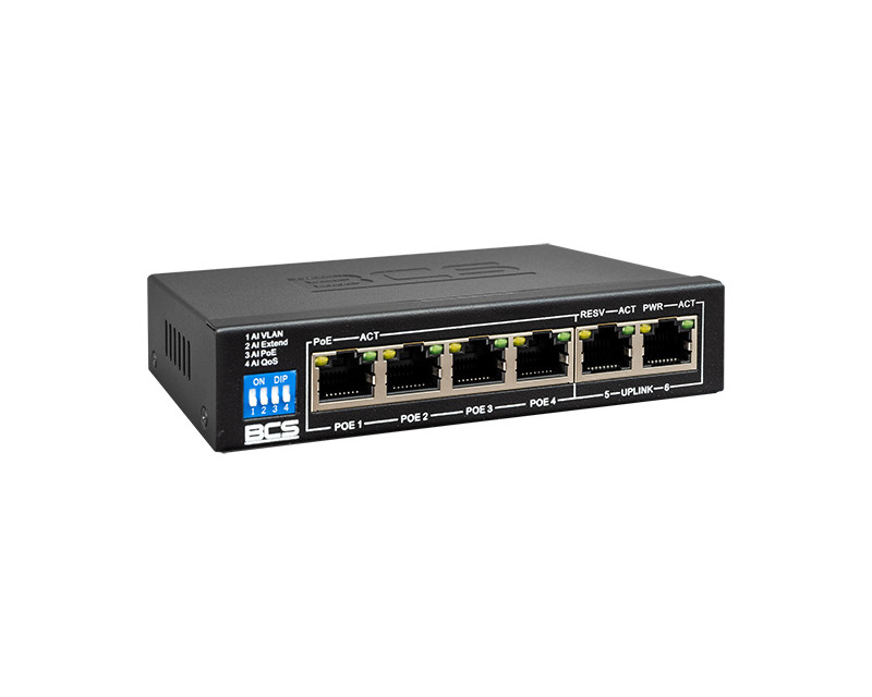 BCS-B-SP04G02G 6 portový switch - 4x PoE 30W 1Gbps + 2x uplink RJ-45 1Gbps, PoE celkem…