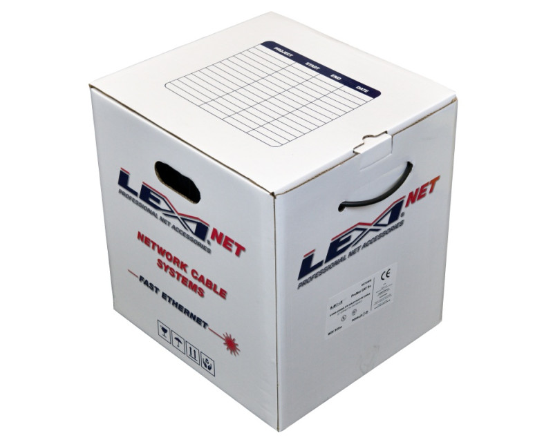 LEXI-Net instalační kabel FTP CAT 5e 24AWG venkovní dvouplášť PVC+PE 305m samoodvíjecí box černý
