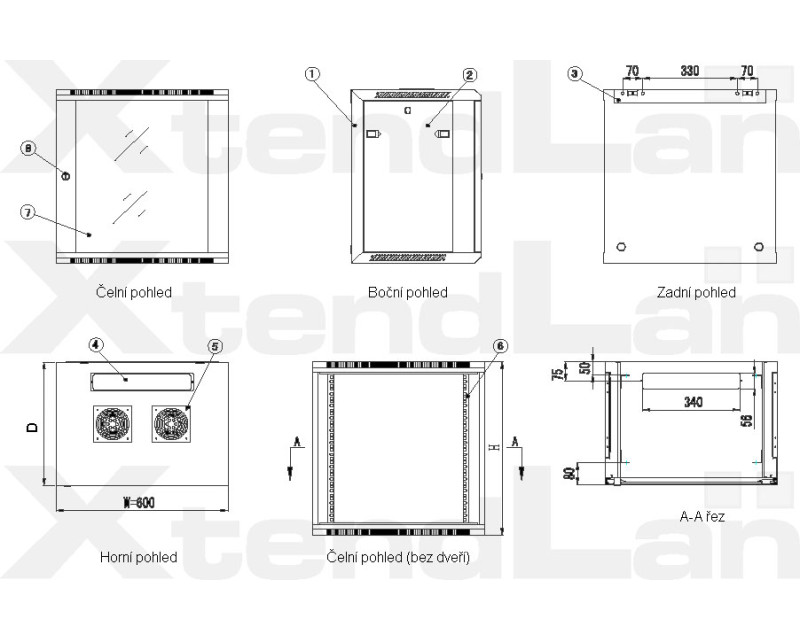 Rozvaděč nástěnný 6U 600x600 - ČERNÝ