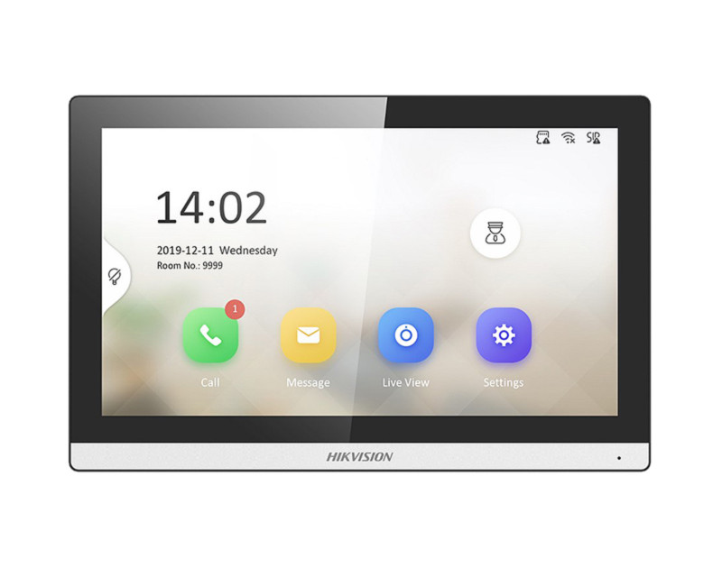 Vnitřní monitory HikVision 7" barevný TFT-LCD monitor pro videotelefony určený pro instalaci na stěnu, dotykové ovládání, rozlišení monitoru 1024x600px, vestavěný mikrofon a reproduktor, podpora TF karty max. 128GB, rozhraní RS-485, LAN port 10/100 Base, 8/2 alarm vstup/výstup, rozměry 175x113.5x21mm, provedení plast, PoE napájení po LAN síti nebo z napájecího adaptéru 12VDC - 8W, zdroj není součástí