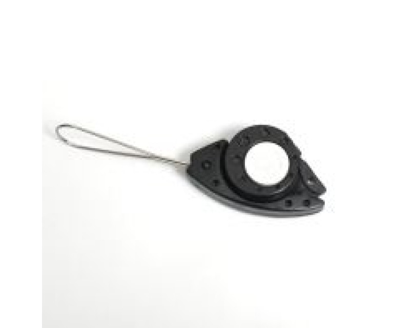 Kotvící svorka/ úchytka závěsná s očkem FISH-CLAMP v.2011 pro instalaci DROP kabelu 3,5mm samonosným