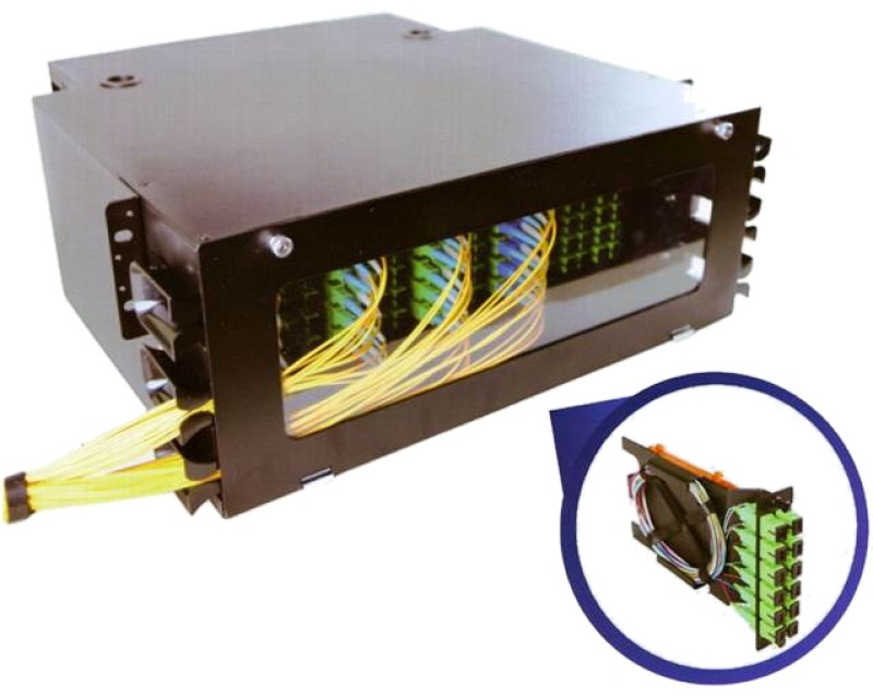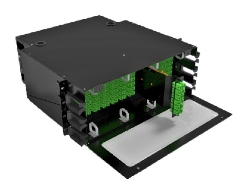 Vysokohustotní optický rozvaděč uřčený pro montáž do 19" velikost 4U