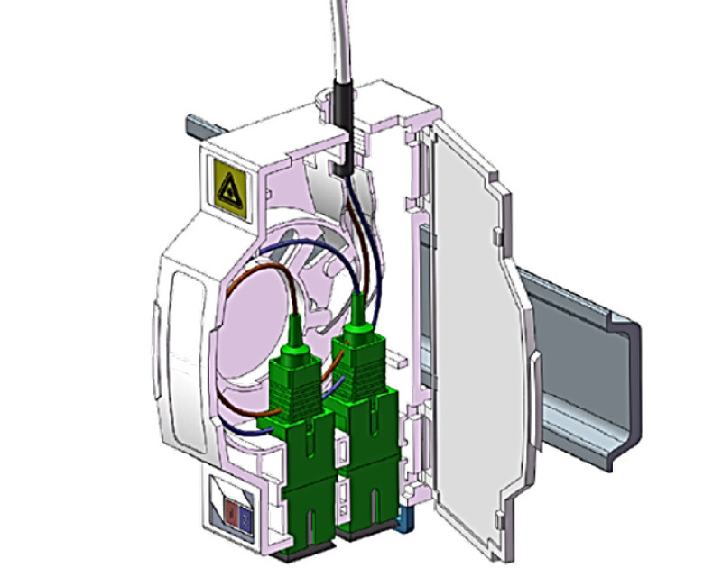 Plastová zásuvka (PC+ABS) na DIN lištu otvory pro 2x SC Simplex (LC Duplex, E2000 simplex)
