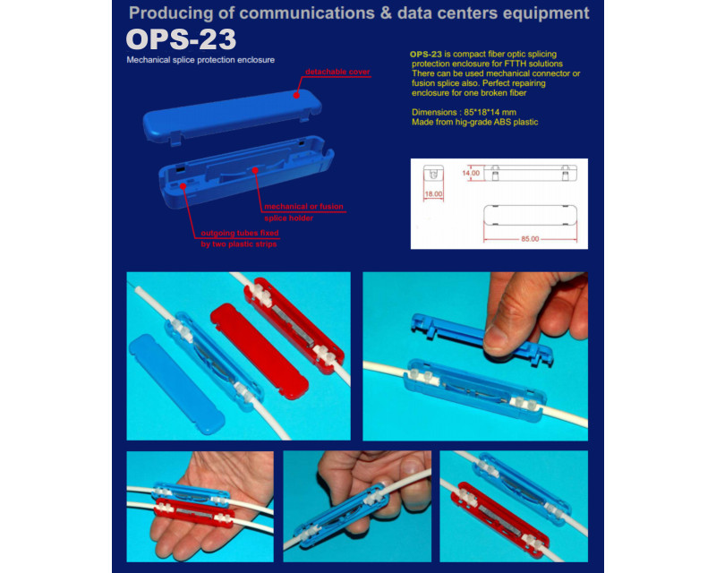 Plastový ochraný box pro spojení optických vláken, je možné použít Fibrlok 2529 nebo smrštitelnou ochranu sváru