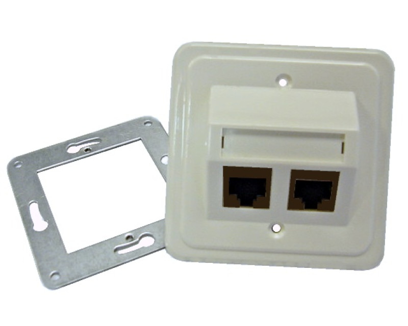 Zásuvka 2xRJ45 UTP CAT 5e pod omítku, vybavená rozměr 80x80mm s kovovým rámečkem