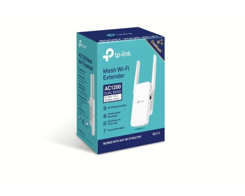 WiFi extender TP-Link RE315 AP/Extender/Repeater, 1x LAN, AC1200 300Mbps 2,4GHz a 867Mbps 5GHz, OneMesh