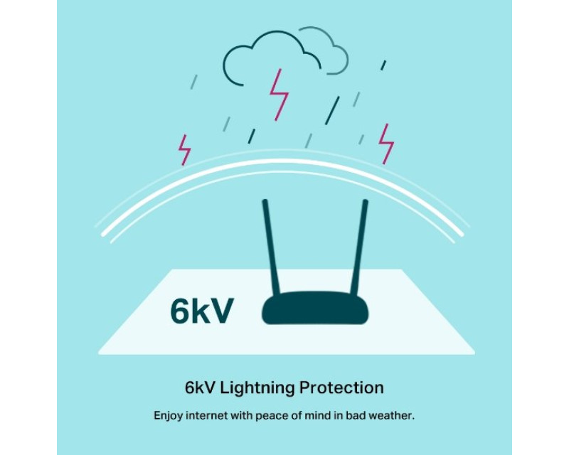 Ochrana proti zásahu bleskem chrání modem/router TD-W9960 před poškozením jeho elektrických součástí v důsledku bouřek, takže i v „psím“počasí si můžete internet užívat s klidem v duši.