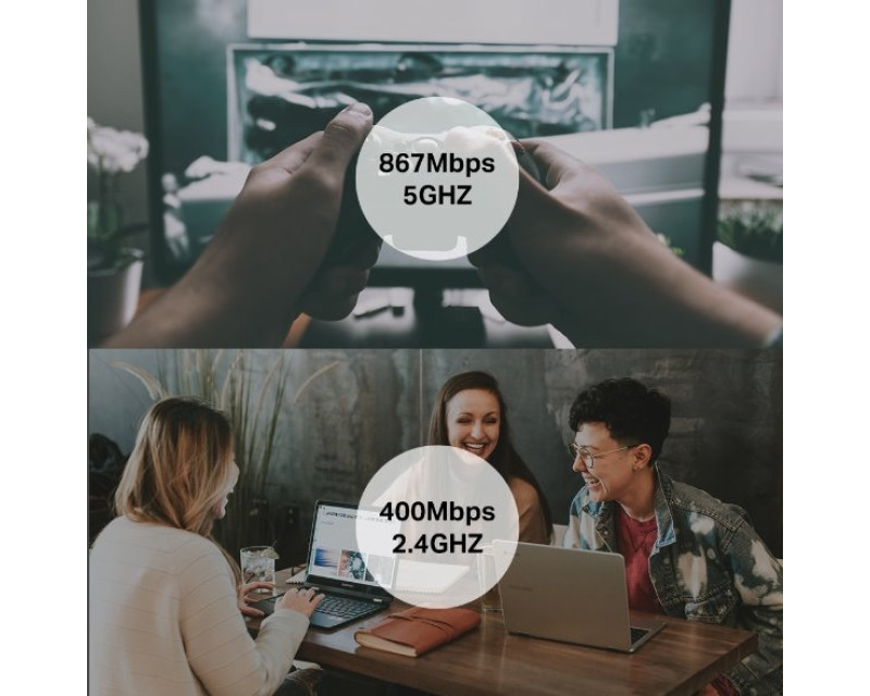 rychlosti až 400 Mbps v pásmu 2,4 GHz a 867 Mbps v pásmu 5 GHz. Pro