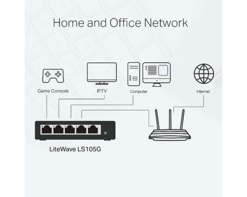| Rozhraní | 5 x 10 / 100 / 1000 Mbps, automatické vyjednávání, porty Auto-MDI / MDIX |