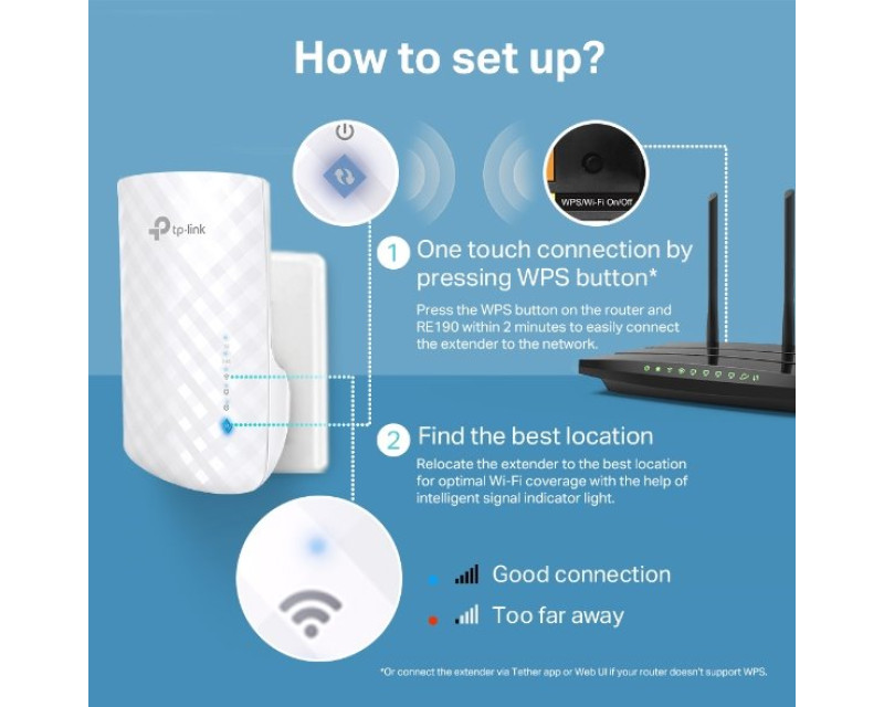 Umístěte WiFi extender RE190 mezi bezdrátový směrovač a