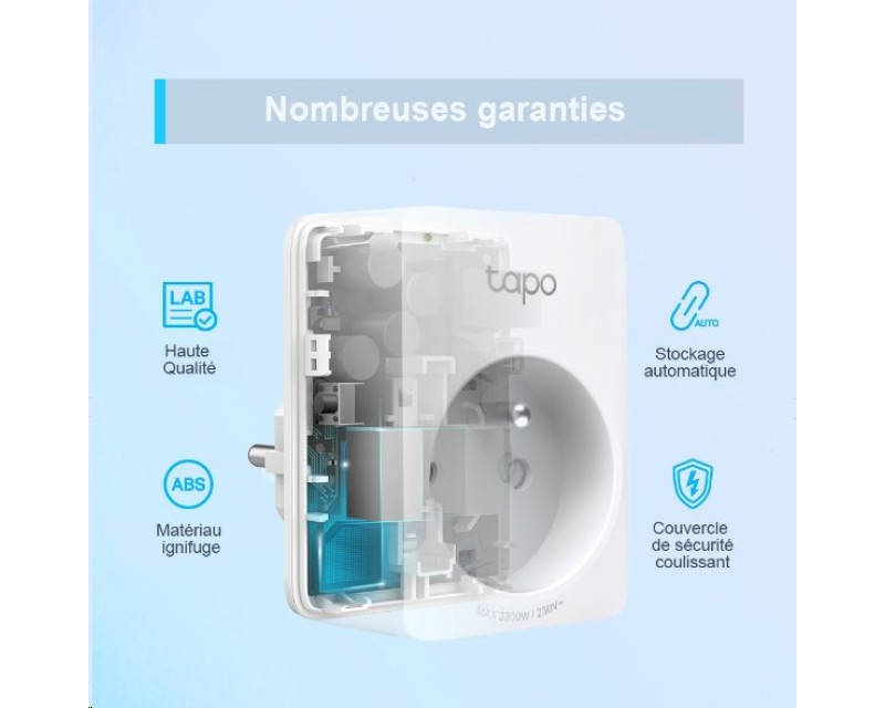 Režim V nepřítomnosti je funkce, která inteligentně simuluje, že je někdo doma. Zapíná a vypíná připojená zařízení, když jste mimo domov, aby zabránila lidem se špatným úmyslem vniknout do vaší domácnosti. Zásuvka je k tomu všemu vyrobena z materiálů zpomalujících hoření, které rapidně minimalizují riziko vzniku požáru. Nechybí ani bezpečnostní kryt bránící úrazu elektrickým proudem. Tapo P100 tak splní i ty nejpřísnější bezpečnostní požadavky a spolehlivě tak ochrání vás, vaši rodinu i váš domov.