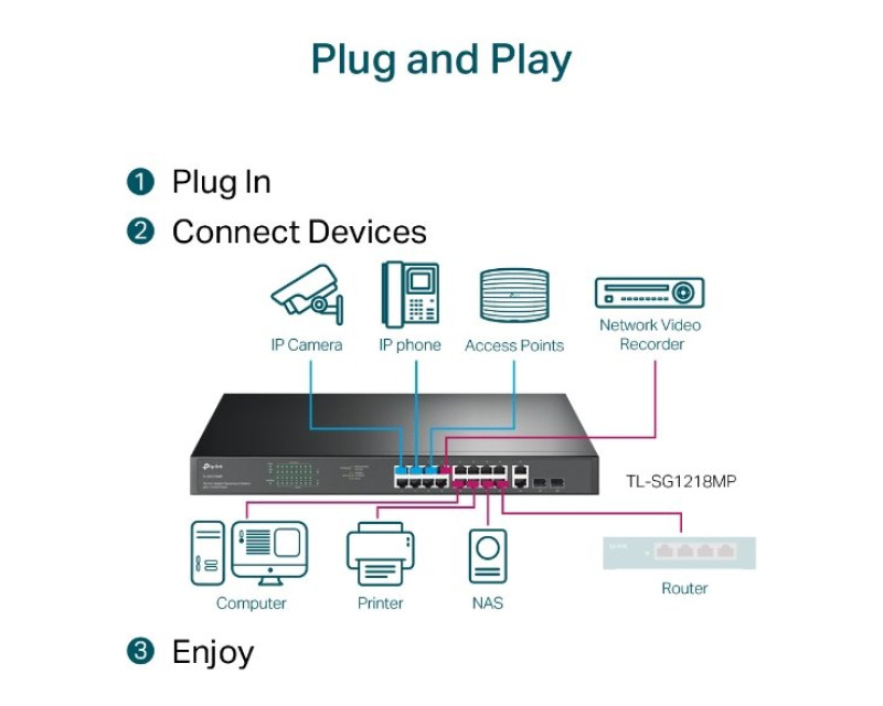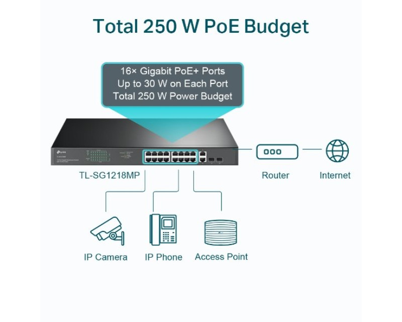 TL-SG1218MP je plně kompatibilní se zařízeními PoE, jako jsou IP kamery,