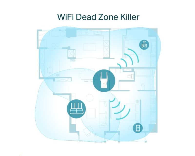 - Wi-Fi extender TP-Link RE605X poskytuje výrazné rozšíření dosahu až o 1 500 m²