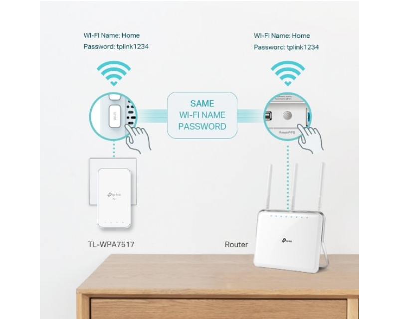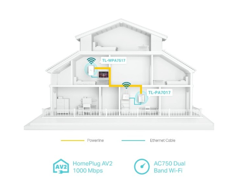 - „Plug, Pair and Play“ (zapojit, spárovat a jedeme) – nastavte svou síť rozváděnou přes kabely elektrické sítě a začněte si užívat rychlé, bezproblémové bezdrátové i kabelové připojení během chvilky
