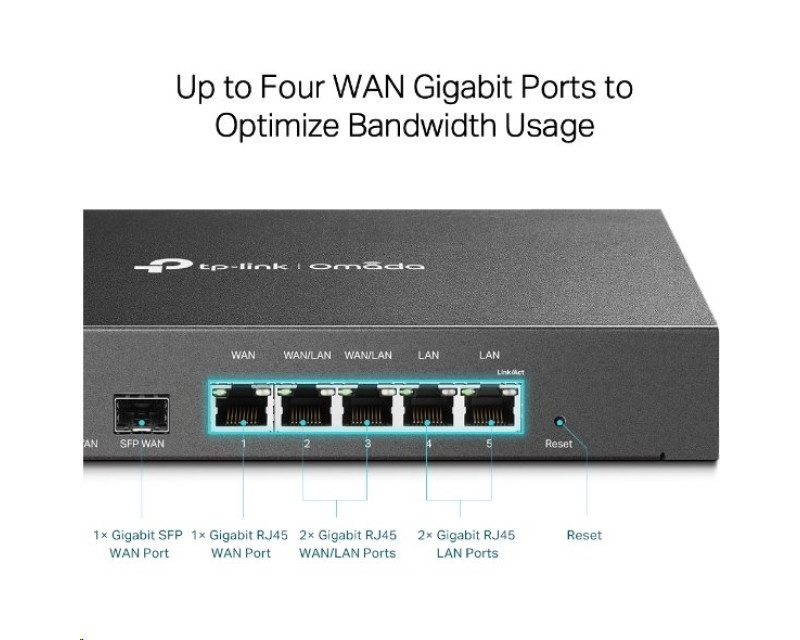 - Až 4 porty WAN: 1 gigabitový port SFP WAN, 1 gigabitový port RJ45 WAN, 2 gigabitové porty WAN / LAN optimalizují využití šířky pásma.