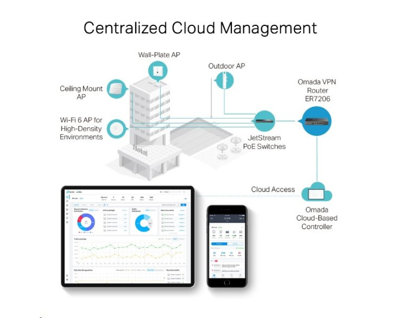 - Centralizovaná správa: Cloudový přístup a aplikace Omada pro mimořádné pohodlí a snadnou správu.