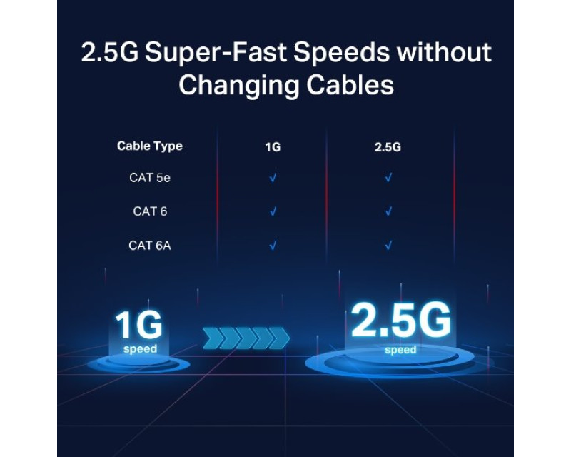 - 8 portů s konektorem RJ45 dosahuje rychlosti přenosu dat až 2,5 GB/s