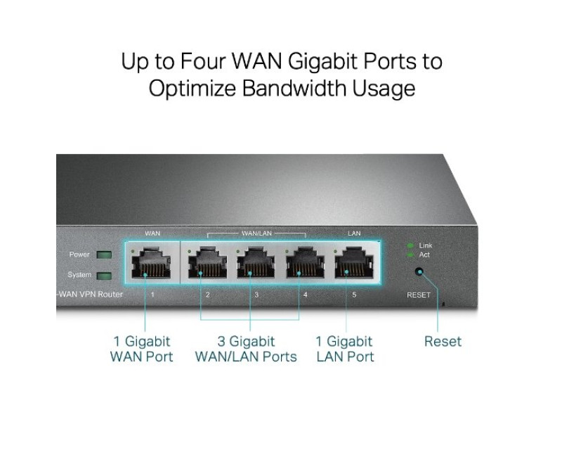 Gigabitový Multi-WAN VPN SafeStream router TP-LINK TL-ER605 zaujme špičkovými možnostmi zpracování dat a je vybaven řadou výkonných funkcí, mezi které patří IPsec/PPTP/L2TP VPN, rozdělování zátěže (Load Balance), řízení přístupu (Access Control), ochrana před útoky DoS (DoS Defense) a řízení šířky pásma (Bandwidth Control).