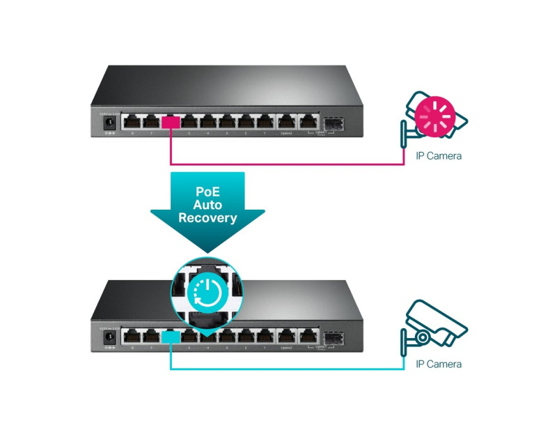 Tento PoE přepínač také dokáže obnovit PD zařízení, jako jsou IP kamery a AP, když