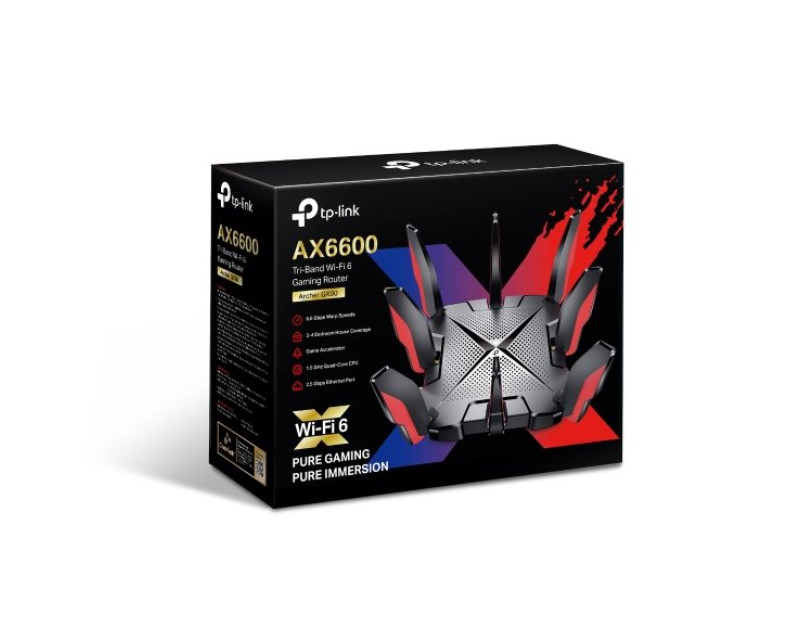 Router TP-Link Archer GX90 vyplní potřeby každého hráče počítačových her. Poskytuje totiž 3 oddělená pásma s kombinovanou rychlostí až 6579 Mbit/s. Technologie 4T4R a HE160 pomáhá hernímu pásmu dosáhnout rychlosti 4 804 Mbit/s, aniž by docházelo k rušení dalšími připojenými zařízeními.