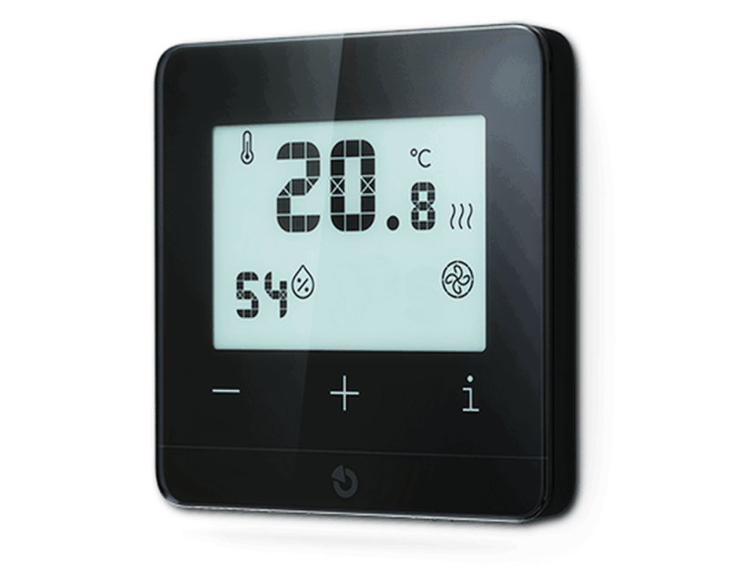 Lokální ovládání již nemůže být jednodušší. Tlačítky plus a mínus se nastavuje požadovaná teplota, tlačítko „i“ pak umožňuje přepínat mezi zobrazením měřených teplot prostoru, podlahy a nastavené teploty. Žádné složité programování ani komplikovaná menu.