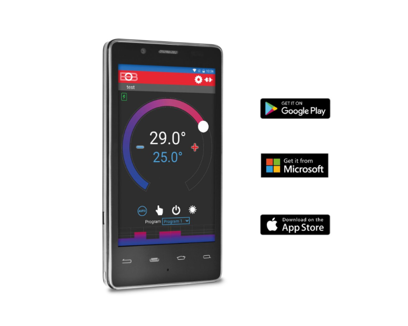 Bezdrátový termostat s možností ovládání přes WiFi. S aplikací EOB PT-WiFi pro chytré telefony je možné plně ovládat Váš topný systém nejen přes internet.