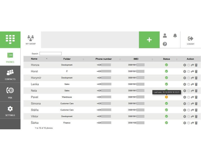 Vzdálená cloudová správa.* Služba Jablotool.com umožňuje také intuitivní a efektivní správu stolních telefonů ve firmách. Administrátoři mají přehled o stavu jednotlivých telefonů, mohou vytvářet skupiny telefonů se sdíleným firemním adresářem, přidělovat telefony uživatelům a určovat jejich práva, nastavovat pravidla přesměrování hovorů atd. To vše vzdáleně z pohodlí kanceláře a na pár kliknutí.
