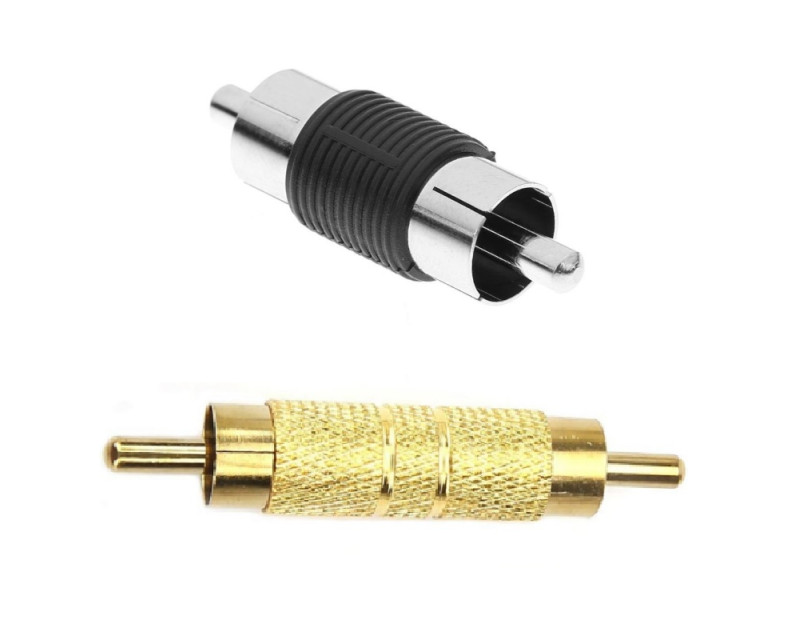 Oboustranná spojka typu "samec" pro cinch konektory. Slouží k jednoduchému připojení mikrofonů s cinch konektory na kamery s cinch konektorem. Doporučené příslušenství při koupi mikrofonu z naší nabídky s osazenými konektory. V nabídce jsou kovové zlacené či kratší plastové pro úsporu místa. Součástí dodávky je náhodný výběr (pokud neuvedete do poznámky přesný typ)