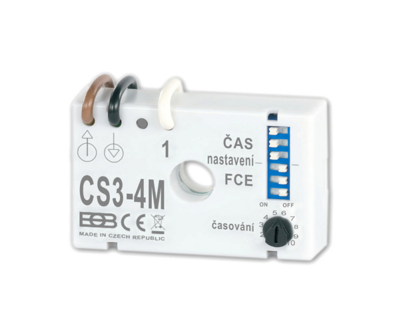 Spínač pod vypínač CS3-4M je v zapojení BEZ NULOVÉHO VODIČE a má možnost nastavení OSMI FUNKCÍ SEPNUTÍ.