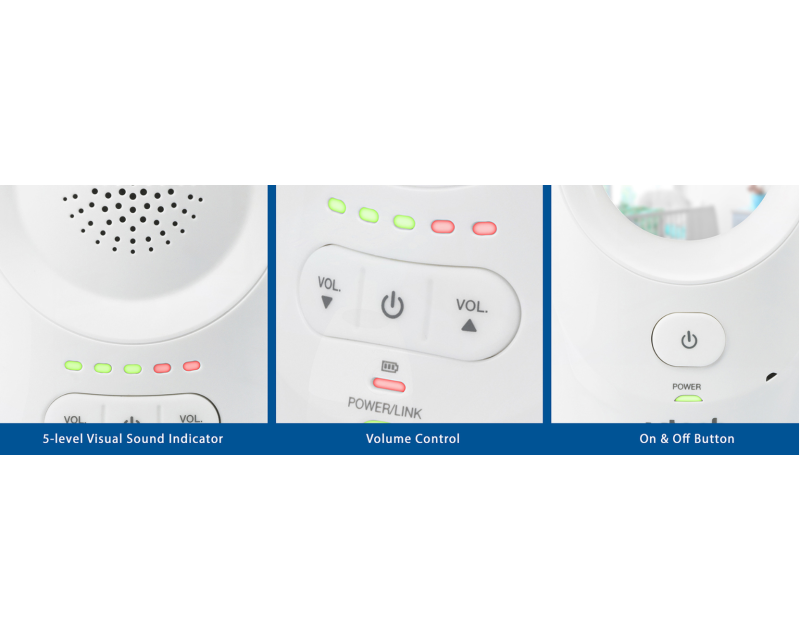 Dětská chůvička Vtech DM1111 je chytrým a důmyslně zpracovaným pomocníkem při péči o vaše miminko! Tento základní model splňuje všechny nároky moderního a bezpečného přístroje pro monitorování dítěte, jako je technologie DECT pro přenos křišťálově čistého zvuku, indikátory napájení, dobíjení, nastavitelná zvuková a vizuální kontrola hlasitosti (5 úrovní) a vysoce kvalitní reproduktor. Dosah dětské chůvičky je až 460 metrů. Možnost využití zdrojového napájení rodičovské jednotky nebo baterie s kapacitou až 14 hodin monitorovacího času.