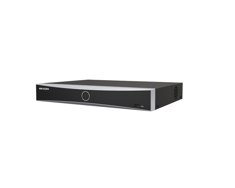 max. rozlišení 12Mpx, komprese H.265+/H.265/H.264+/H.264, příchozí/odchozí dat. tok 40/80Mbps, HDMI (4K)/VGA (1080p) nezávislé, Hik-connect, ONVIF, 1x SATA max 16TB (bez HDD), LAN: 10M/100/1000M auto adaptabilní, 4 PoE af/at porty max 50W celkem, 2x USB, obousměrné audio, napájení 48V DC/10W (bez HDD), rozměry 320x240x48mm, poplachové I/O 4/1