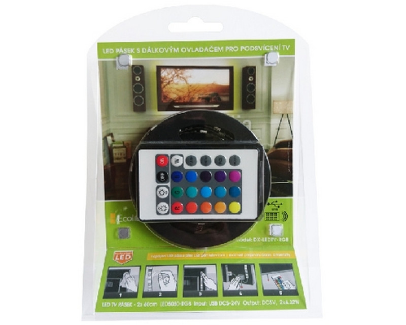 Stylový LED pásek s označením DX-LEDTV-RGB je určen pro montáž na zadní stranu vašeho televizoru. Díky barevným RGB diodám vytvoříte na pozadí úchvatné ambientní osvětlení, jehož barvu, intenzitu a efekty lze volitelně nastavovat pomocí přibaleného dálkového ovládání. SMD TV stačí jen připevnit pomocí připravené samolepící pásky a zapojit do USB kontektoru televize.