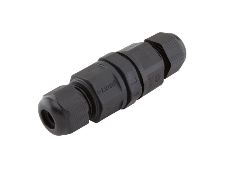 Kabelová vodotěsná spojka - rozbočka tvaru "I" pro vícežilové kabely s krytím IP68. Vhodná pro venkovní použití, např. pro připojení reflektorů.