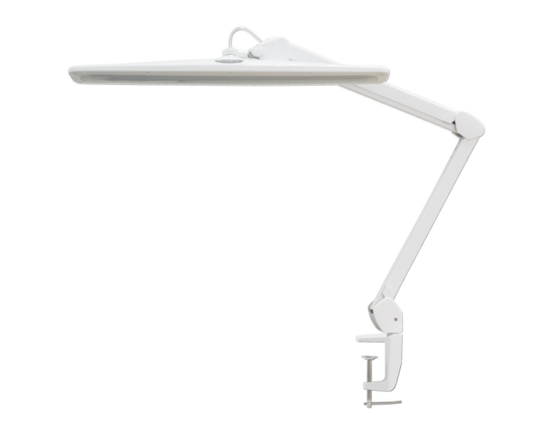 Stolní pracovní úsporná LED lampa o svítivosti 1000Lm a barvou světla 6500K se svorkou pro snadné přimontování na stůl či pracovní desku. Volba režimu a pohodlné stmívání pomocí tlačítek na hlavě lampy.