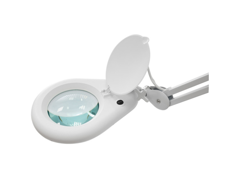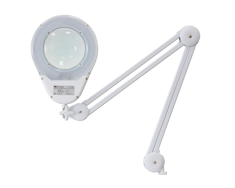LED stolní lupa s osvětlením, 5D, 2,25X, se svorkou, bílá - FKtechnics