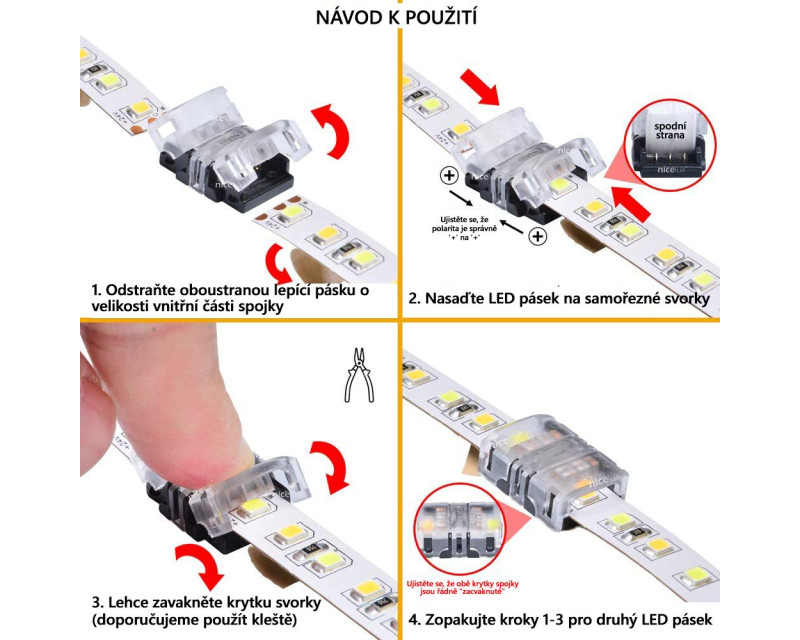 Samořezná 2 pinová spojka (pásek-pásek) pro jednobarevné LED pásky o šířce 8 mm (bez nutnosti pájet)