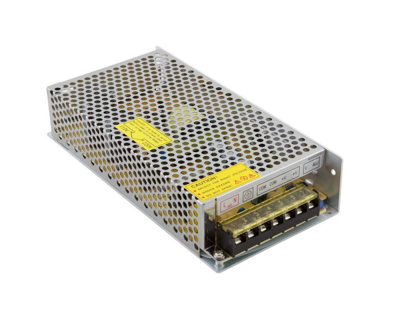 Průmyslový spínaný zdroj 230 V / 12 V, 12,5 A (150 W) s krytím IP20. Vývody jsou vyvedeny na svorkovnici. Tento zdroj je určen pro zabudování do přístrojů či jiných míst, kde je lépe chráněn před vniknutím cizích předmětů. Tento zdroj je vhodný např. pro napájení LED pásků vyžadujících dobře stabilizované stejnosměrné napětí 12 V. Maximální proudové zatížení zdroje je 12,5 A. U těchto výkonných zdrojů je pro delší životnost třeba zajistit cirkulaci vzduchu, nebo dodatečné chlazení.