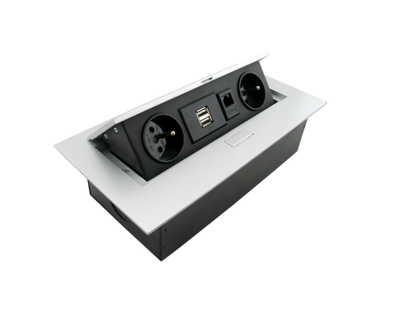 Plynule samovýklopná zásuvková lišta vhodná nejen pro pracovní desky, stoly ale i kuchyně, nábytek či podlahy - prostě tam, kde potřebujete síťové zásuvky. Elegantní, jednoduchá a praktická. Velkou výhodou je i 2x USB pro nabíjení mobilních zařízení a RJ-45 konektor pro připojení k LAN.