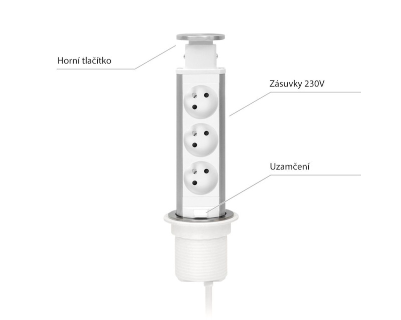 Přípojný sloupek (3x zásuvka), je vhodný pro pracovní desky, stoly ale i kuchyně a nábytek. Elegantní, jednoduché, praktické a nenápadné.